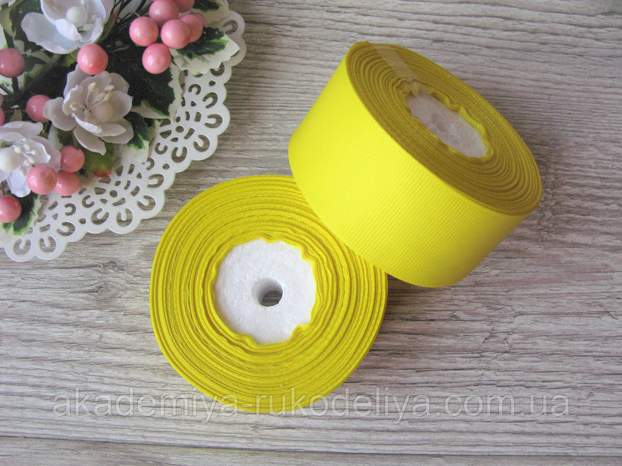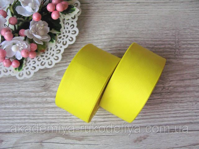 Репсова стрічка завширшки 4 см жовтого кольору. Бобина 18 м.