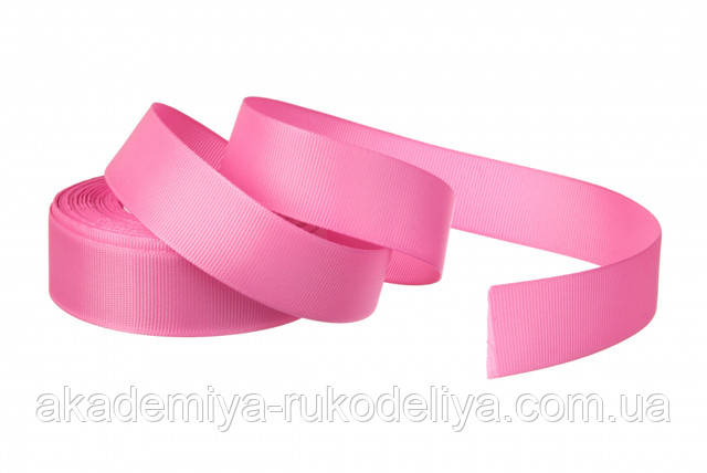 Репс однотонний на метраж. Колір яскраво рожевий. Ширина 2.5 см бобіна — 18 м