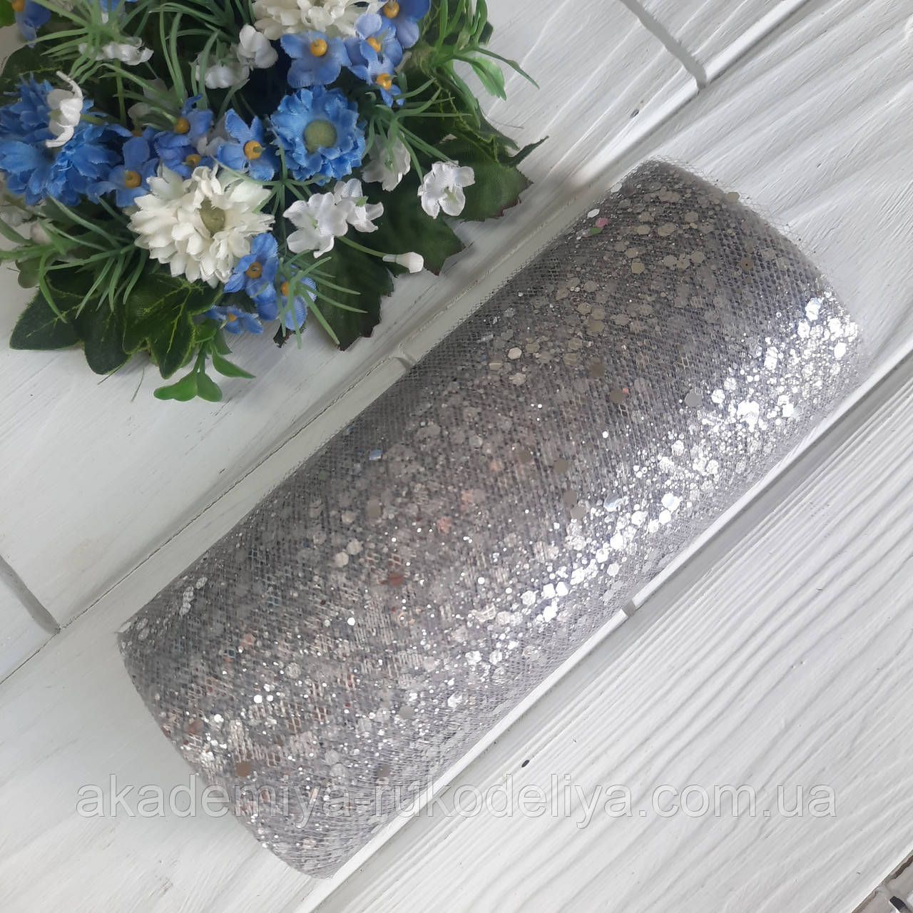 Фатин із дрібними блискітками та паєткою, 15 см/8 м/ срібний