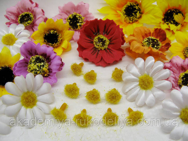 Маленька (8 мм) покрита жовтим флоком квіткова серединка прекрасно підійде для дрібних ромашок, маргариток, астр, хризантем, георгін тощо.